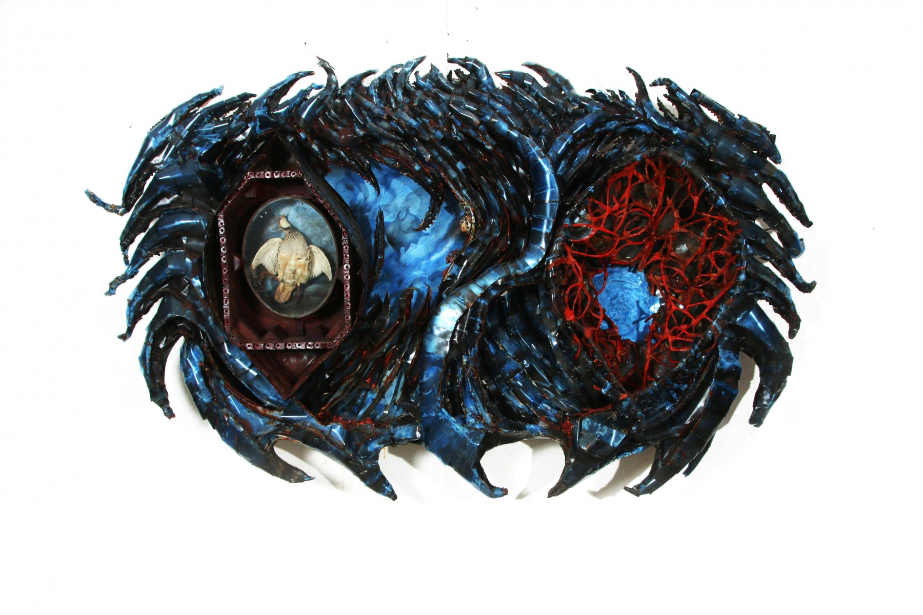 CROSS-SECTION OF APERTURE/ORIFICE Carved plywood layers, leather, wood and x-rays, 2010, dimensions – 55″ x 62″, Photography: Donnette Zacca